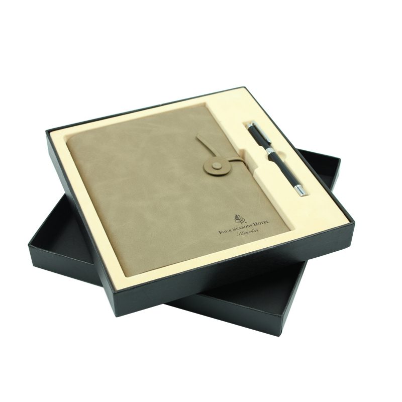 此款商務禮品套裝包含一本PU筆記簿,一支金屬簽字筆,訂製禮品盒包裝,高端大氣,適合作為商務禮品贈送客戶,或作為學校畢業禮品贈送。