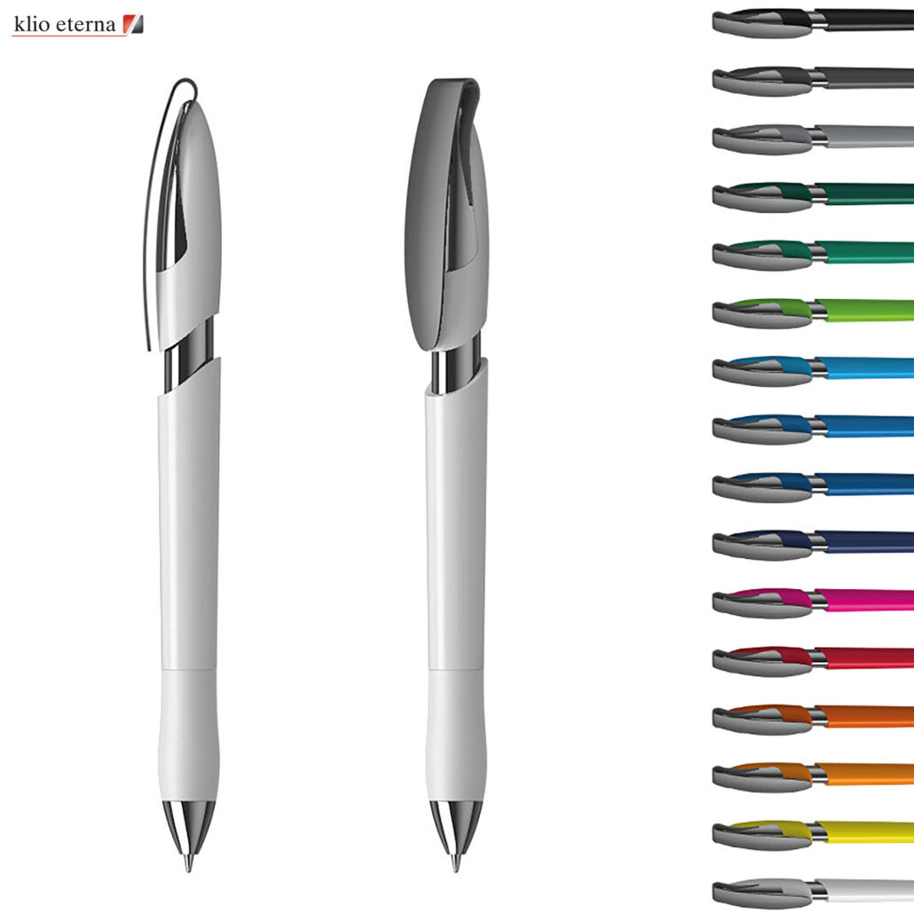 Klio – 歐洲頂級品牌,Est。 1900年,銷往世界各地。點擊操作,堅固的高光澤塑料筆筒,帶有熱塑握把,為您提供舒適的書寫體驗,寬闊的打印區域夾子,閃亮的黃銅鍍鎳筆尖,夾子和金屬化閃亮的銀色套管,高品質絲技術帕克型德國製造的黑色墨水筆芯(質量符合ISO 12757-2/保質期3年),5000米書寫距離(比國產鋼筆長5倍),碳化鎢球為您提供優質書寫。德國設計和製造。每種顏色最少 500 單位。提供 5,000 多種定制顏色