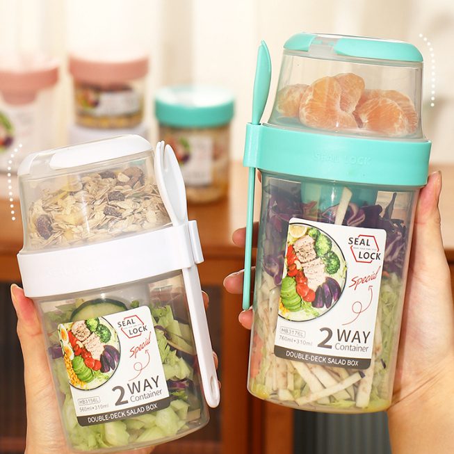 3.用途功能:自帶叉子雙層沙拉杯,全套配置,一杯搞定。