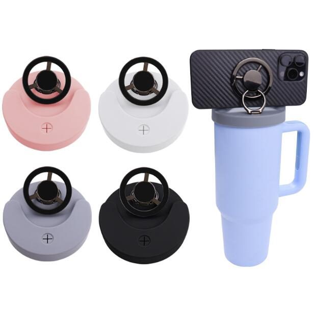 磁吸防漏密封手機支架多功能矽膠杯蓋不鏽鋼杯